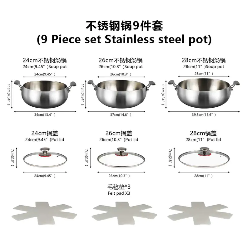Newdream fabrica juegos básicos de una sola capa que se adaptan bien a la cocina de fin de semana, y juegos de varias capas más robustos si estás frente a la estufa cinco noches a la semana. Sí, las cosas más espesas cuestan más, pero incluso calentar se amortiza rápidamente cuando no estás cuidando salsas o raspando arroz quemado.